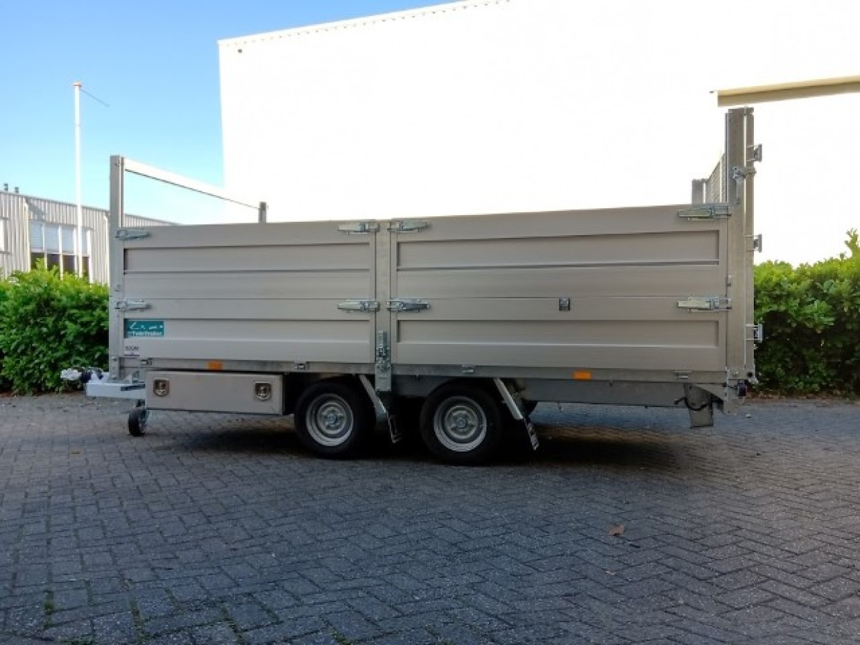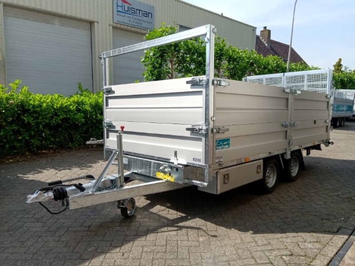 Recent afgeleverd deze twintrailer aanhangwagen tridax heeft opzetborden aan de voorzijde en openklapbare opzetborden aan beide zijdes.